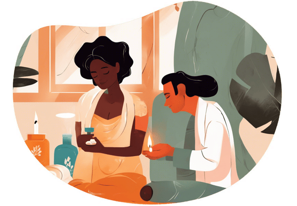 - Lastly, get ready for the massage session. Make sure you have comfortable spots to lay down, scented oils for the massage, and relaxing music to play in the background.