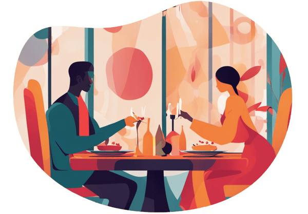 - The table is elegantly set with your finest dinnerware, a bouquet of fresh flowers, flickering candles casting a warm glow, and soft music playing in the background. The meal is a carefully chosen menu combining both of your favorite dishes.