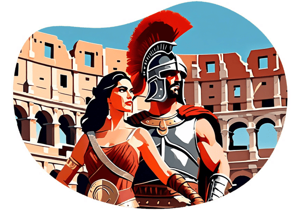 Embrace the allure of ancient Rome with a roleplay scenario featuring a valiant gladiator emerging victorious and catching the eye of a smitten noble admirer.
